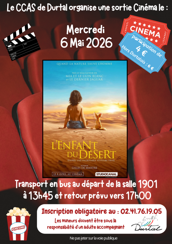 Le CCAS de Durtal organise une sortie cinéma le mercredi 6 mai 2026. Le film proposé est « L’Enfant du […]